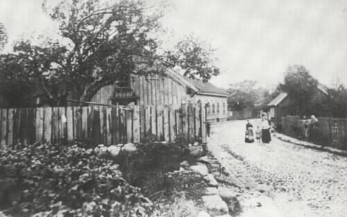 Ljusa byggnaden t v. Storgatan 73 uppförd 1888 av stadsfiskal P Lindvall. Huset närmast Storgatan 77 uppfört 1850 av sjömannen P Lilljensten. Text på till fotot: Nedre delen av Storgatan i "Turkiet". Andra huset vänster sida det av stadsfiskalen Lindvall efter det den gamla gården brann ner nyuppförda, kallat "Sultanatet". Kortet taget i början av 1890-talet. Storgatan 126, sedemera Storgatan 73.