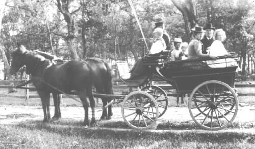 Två bilder tagna ur album 5 o. 7. Fr. v. Carl och okänd kusk, Elisabet,Johan, Ingeborg, Anders och Anna Falkman. Text på baksidan av en kopia " I Björnhults skog, sommaren 1901". Bilden hör ihop med 00326, tagen vid samma tillfälle. Identifiering genom tidigare kända foton.