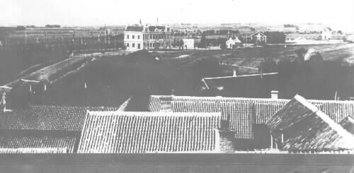 Invigning av Mellersta Hallands Järnvägen 1886. Provisorisk korslista/kommunarkivarien Ytterliggare kopior finns i album K 24 o C3. På fotot ses förutom stationen och dess byggnader följande. Enl Carl Estmar. 1. Bostadshus på tomt 73 (Badhusparken) , före 1831. 2. Uthus d:o före 1831 3. "Bommahuset" på tomt 71 (Badhusparken 1700-talet, rivet 1899) 4. Bostadshus tomt 70w (Sandgatan) 1855 Följande byggnader avbrände 1888. 5.Bostadshus tomt 74 (Centralen 2) 1858 6. Uthus tomt 74 (Centralen 2) 1882? 7. Ladugård tomt 74 (Centralen 2) 1858, nr saknas på bilden. 8. Uthus tomt (troligen 74, kan vara 64 Centralen 1) 1862 9. D:o tomt 64 o 63 (Centralen 1) 1885 (2 vån) 10. Ladugård tomt 63 Brogatan 1863 11. Magasin tomt 63 Brogatan 1863 12. Skorsten på bostadshus Brogatan 1860 (2 vån).