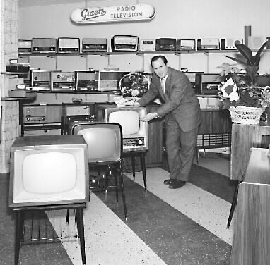 Bild 1: Lennart Qvarfordh var delägare av Radio & TV-teknik på Köpmansgatan åren 1958-196x. Bild 3: Verkstad en trappa ner. Fr. v. Ivar Larsson "Sammels-Ivar" från Olofsbo ägde tidigare radioaffären som låg på Apoteksgatan i sedan många år riven trälänga (idag Stadshusets P-plats). Lasse Holmström icke okänd delägare i ECE-data idag, Sixten Andersson delägare i firman tillsammans med Lennart, flyttade från Fbg efter några år. (Uppgifter från Lennart juni 2000).