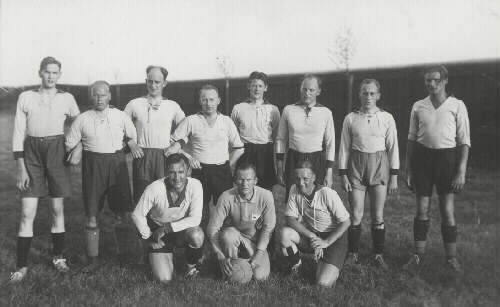 Från v: STENMAN Karl-Gustav, SVANBERG, CARLSSON Folke, LARSSON Sigfrid, NILSSON Evert, OLSSON Rolf, STEHN Gunnar, NILSSON Erik, ANDERSSON Erik "Stalla", RINGSTRÖM Viktor och okänd.