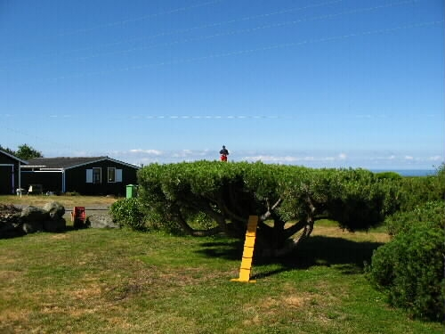 Bild 1o 2: En morgon fick vi se en man häcka i vår tall i Digesgård. Bild 3 o 4: Fast det visade sig vara en el-arbetare på taket av sin grävmaskin. Det luftburna elnätet skulle tas ner och ledningarna grävas ned i marken. Bild 5: Det vart långa diken överallt i Digesgård. Bild 6: Många meter ledningar skulle ner i jorden.