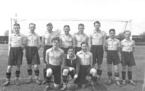 Stående fr. v. NILSSON Per, CARLSSON "Spiken", SVENSSON Gösta, CARLSSON Åke, NILSSON Kurt, NILSSON Verner, NYLANDER Sven, BENGTSSON Torsten. Knästående fr.v. ÖSTMAN Bertil, HOLMSTRÖM Stig ochPERSSON Ragnar.