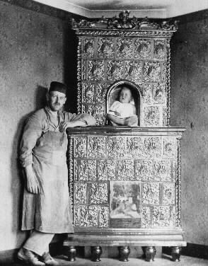 Sigfrid Hindström köpte denna tomt på Södergatan 59, 1927, troligen sattes kakelugnen upp 1928. Sigfrid köpte kakelugnsformarna till denna ugn i Laholm. Han renoverade dessa formarna. De var oftast i gips. Han gjorde några kakelugnar med dessa formar, sedan förstörde han dem. De hade mönster av snäckor. Kakelugnen på fotot är svartglaserad, skulle varit ett skift högre men det fick inte plats. Barnet i nischen vet man ej vem det är. Sigfrid Hindström hade kakelugnsmakeriet vid hörnset Sandgatan/Nygatan, men var även anställd av Falkenbergs stad som hälsovårdsinspektör och uppsyningsman för laxfisket.