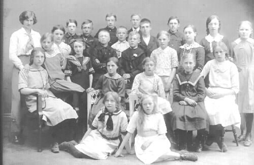 Pojkarna övre raden fr.v. 1 Nils Larsson, 2 Edvin Andersson, 3 Fritjof Bengtsson Andra raden 1 Eric Ericsson, 2 Bengt Stenberg, 3 -, 4 Edvin Andersson Tredje raden: 1 Frtiz Johansson, 2 Knut Olsson Flickorna st. fr.v. : 1 Ruth Strömkvist, 2 Rosa Viborg Höger sida fr.v.: 1 Gertrud Svensson, 2 Henny Johansson, 3 Svea Larsson, 4 Anna Larsson Sittande på stolsyret:1 Svendborg Nilsson, 2 Tekla Jönsson, 3 Karin Bengtsson, 4 Karin Johansson, 5 Ebba Karlsson, 6 Margareta Nilsson Sittande på golvet: 1 Linnea Karlsson, 2 Anna Johansson