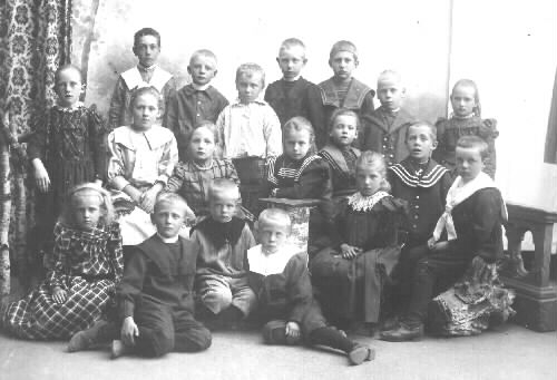 Skolklass år 1904, Gamla folkskolan privatskola Gröna gatan. Första raden sittande på golvet, fr.v.: 1 I Persson (fadern brevbärare), 2 G Boman, 3 E Andersson (fadern banmäst.), 4 N Persson (kallad Ginas Nils) ( en son fiskaffär på Herting). Andra raden fr.v.: 1 H Appelqvist, 2 K johansson ( på Lyckan), 3 E Jönsson, 4 A Törngren, 5 T Andersso (fadern skomakare), 6 F Nilsson (fadern trädgårdsmästare), 7 E Andersson (farbror till Sven-Åke Andersson, urmak.), 8 H Thornberg. Översta raden st. fr. v.: 1 E Sahlin, 2 -, 3 C Andersson (fadern Otto "Lykta"), 4 E Andersson (elektriker) (fadern brevbärare), 5 A Lindqvist (kallad Kådan) (likkisteaffär), 6 I Andersson ( Hallanäsg., kallad "Plankan") (fadern byggmäst. modern barnmorska), 7 A Karlsson (Petters Anna). Förteckning finns ihop med fotot.