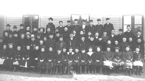 Skolan vid Skolgatan Falkenbergs Elementarskola med elever och lärare från 1900-1901. Kyrkoherde D.Davidson och Signe Hallberg i mitten av lärarna. (A.S.) Första raden sittande fr.v.: 1 L Ölund, 2 K Jenssen, 3 M Ambjörn, 4 H Fältström, 5 E Davidsson, 6 A Olsson, 7 L Strandberg, 8 C Carlstedt, 9 N Nilsson, 10 W Stenström, 11 Y Nilsson-Ohlin, 12 C-F Halberg, 13 C Falkman, 14 E Hermansson, 15 S Ölund, 16 E Möller, 17 D Westergren, 18 G Jernberg. Andra raden, stående fr.v.: 1 M Lungnér, 2 A Ölund, 3 S Ambjörn, 4 M Boman, 5 S Nyman, 6 T Fältström, 7 E Stenström, 8 C von Gegerfelt, 9 okänd, 10 C Blåberg, 11 A Dominique, 12 T Bratt, 13 S Hallberg, 14 D Davidson, 15 M Ahlberg, 16 C Hellgren, 17 Z Svensson, 18 A-L Runnerström, 19 F Fältström, 20 Å Ölund, 21 G Fältström, 22 A Falkman Tredje raden, stående fr.v.: 1 B Johnsson, 2 M Davidsson, 3 A Benbtsson, 4 K Lundgren, 5 O Olsson, 6 A Davidsson, 7 E Svensson, 8 E Falkman, 9 J v. Braun, 10 E Westergren, 11 M Lundgren, 12 B Bondsson, 13 C J Nilsson- Ohlin, 14 S Lindqvist, 15 S Carlsson-Thune, 16 H Törngren, 17 A Lundqvist, 18 I Humbla. Fjärde raden, stånde, fr.v.: 1 K Boman, 2 H Lundqvist, 3 M Lundgren, 4 A Lagerman, 5 A Andersson, 6 O Stenström, 7 J Andersson, 8 G Nilsson. Tillsammans med bilden finns en förteckning över elever vid Fbgs elementarskola 1900-01.