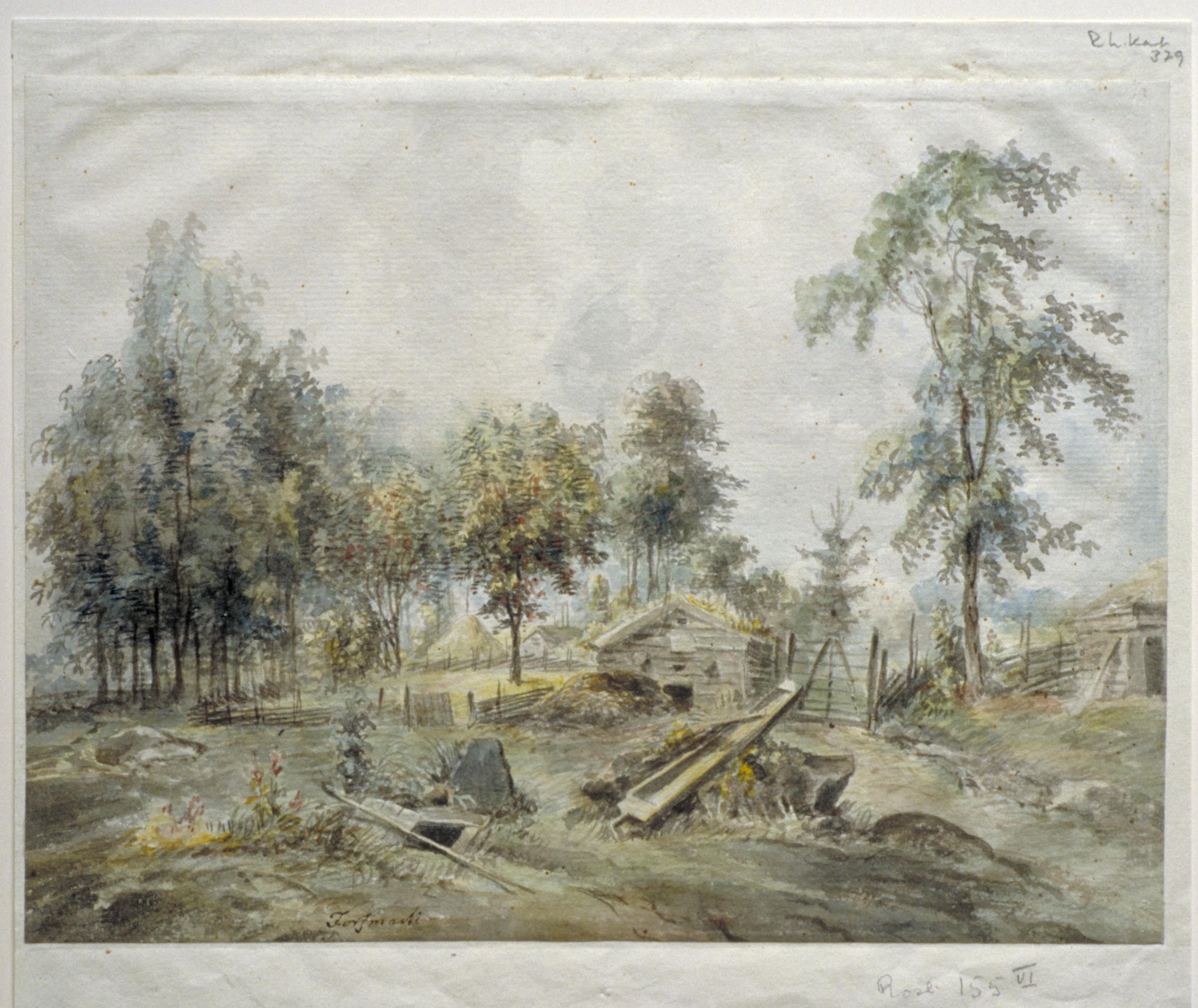 I Forsmarks omgivningar. Akvarell av Elias Martin.