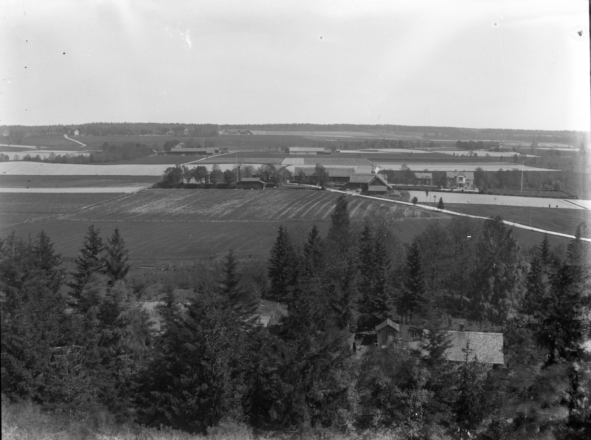 Utsikt från Kroppefjäll över Norra Bäckebol, Gunnarsnäs kyrka och Ekholmen i bakgrunden.