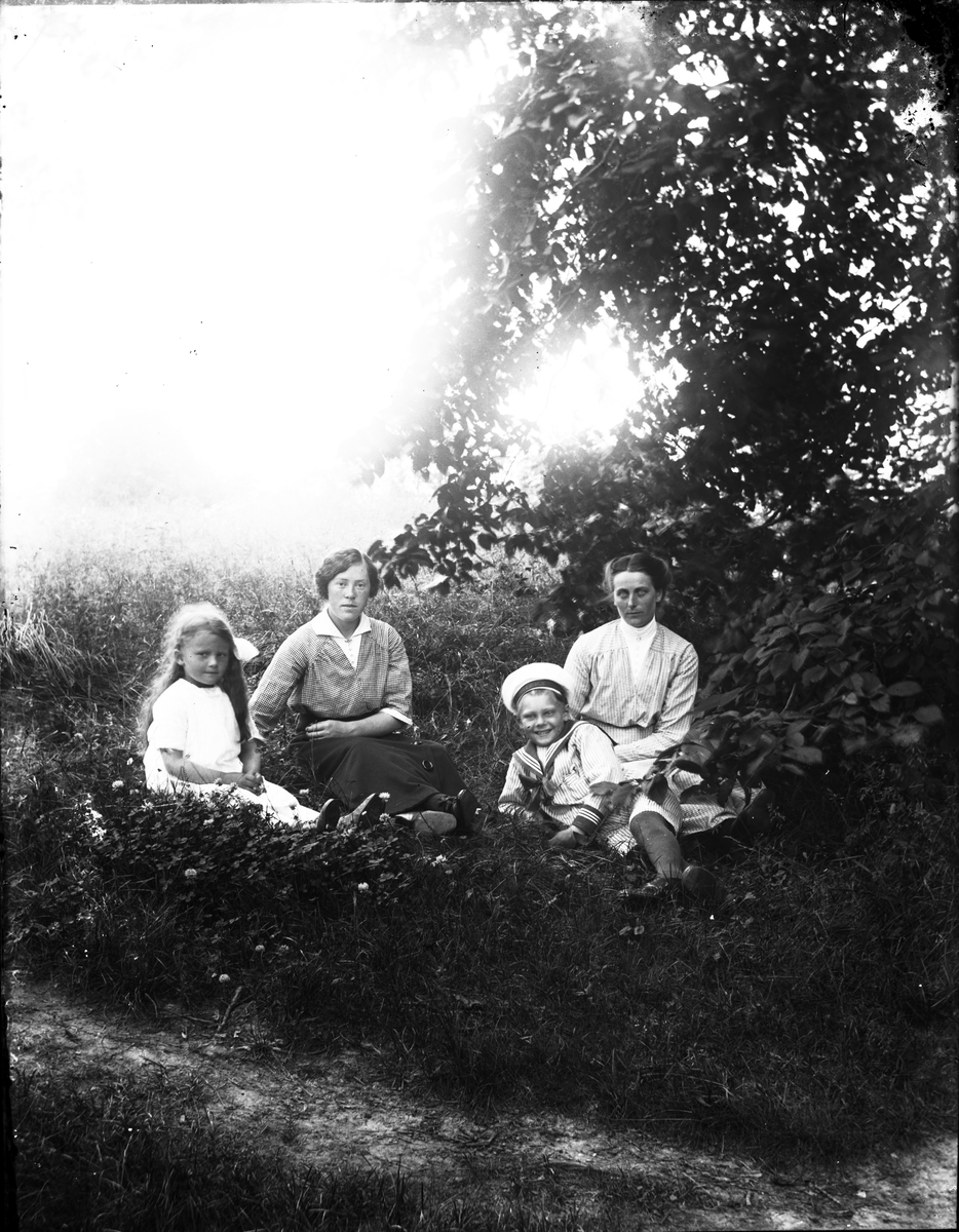 Titel: Dals Rostock. Från vänster: okänd, Hulda Kronstrand, okänd, fru Sylvén från Skara?