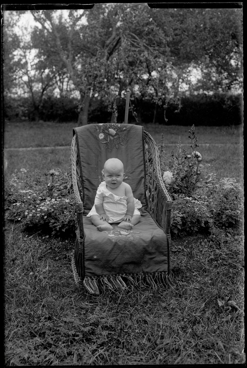 Spädbarn på korgstol