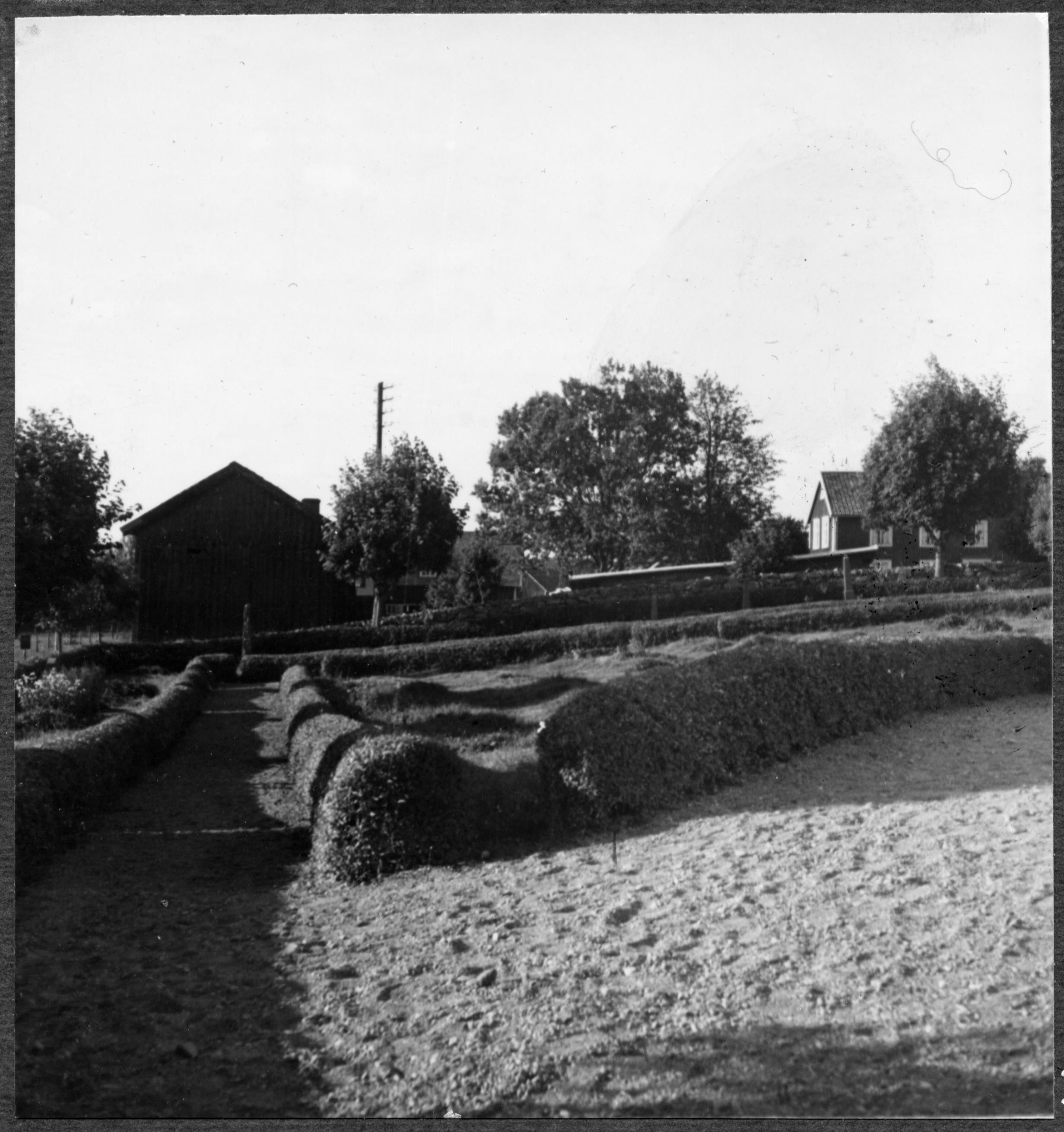 Kyrkogårdens nordvästra hörn. Sockenmagasin i bakgrunden. Foto från söder.