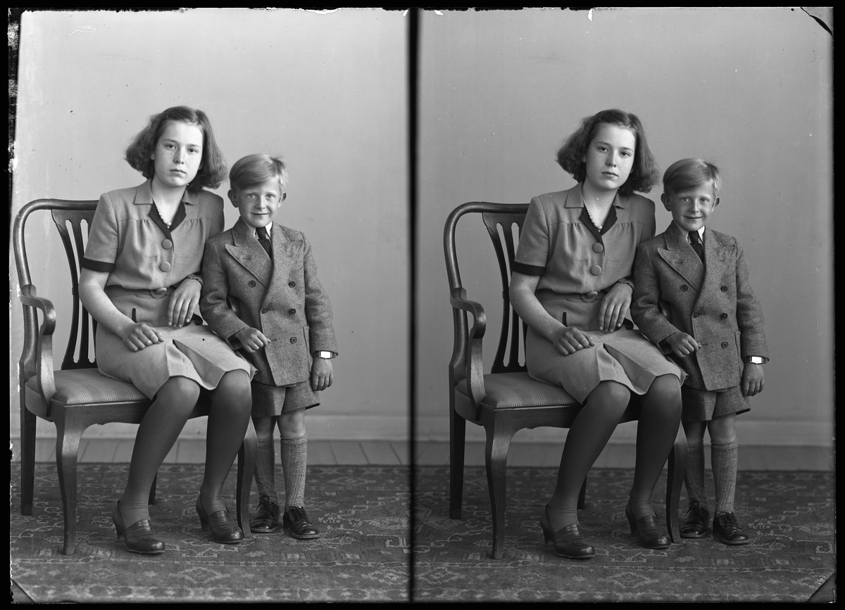 Grupporträtt, två barn. Siv och Lars Olov Bergman.