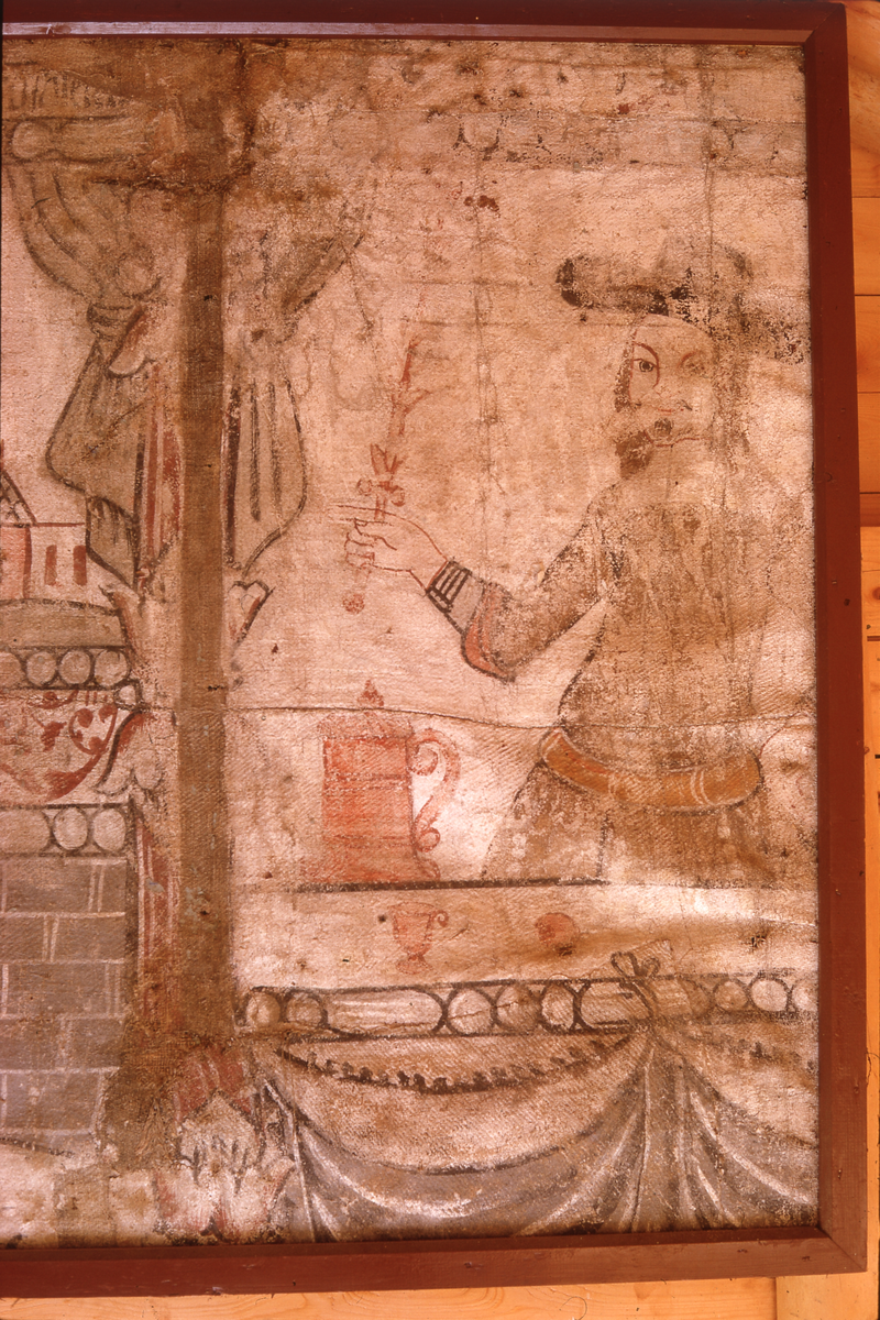 Bjuråkers hembygdsgård. Interiör. Väggmålning: De tre vise männen.