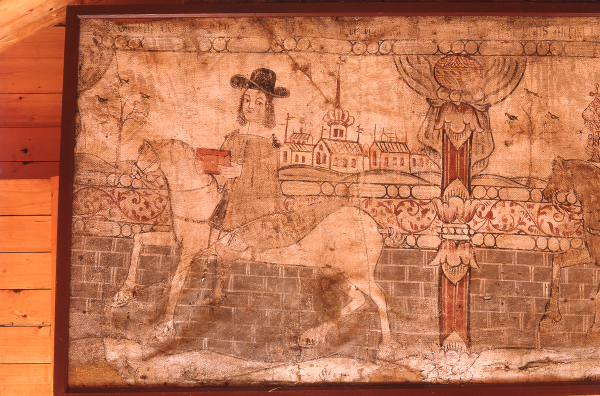 Bjuråkers hembygdsgård. Interiör. Väggmålning: De tre vise männen.
