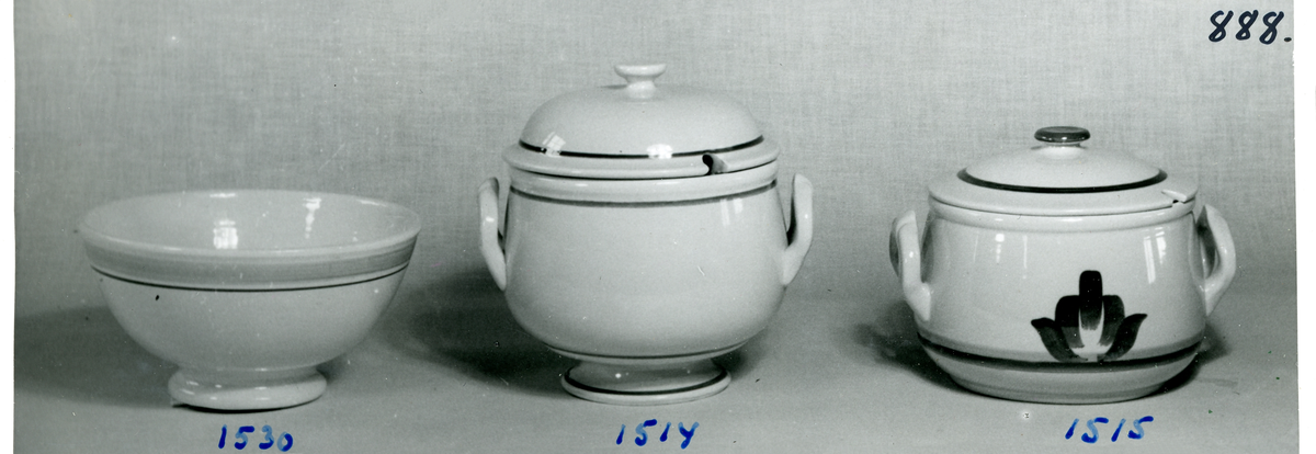 Soppskål och två terriner från Bo Fajans, formgivare Allan Ebeling, 1900-talets mitt.