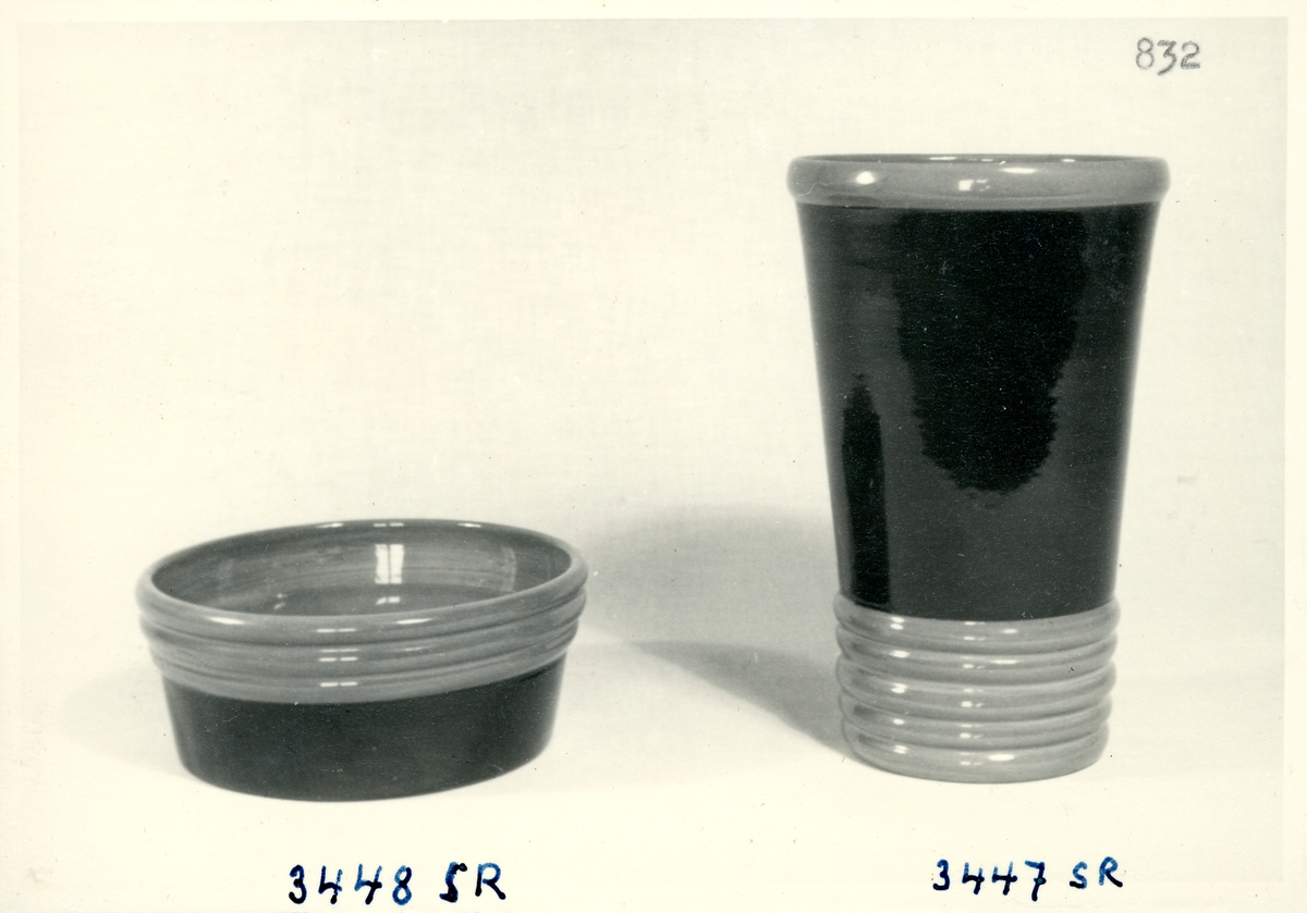 Planteringsskål och vas med SR dekor från Bo Fajans, formgivare Eva Jancke-Björk, 1900-talets mitt.