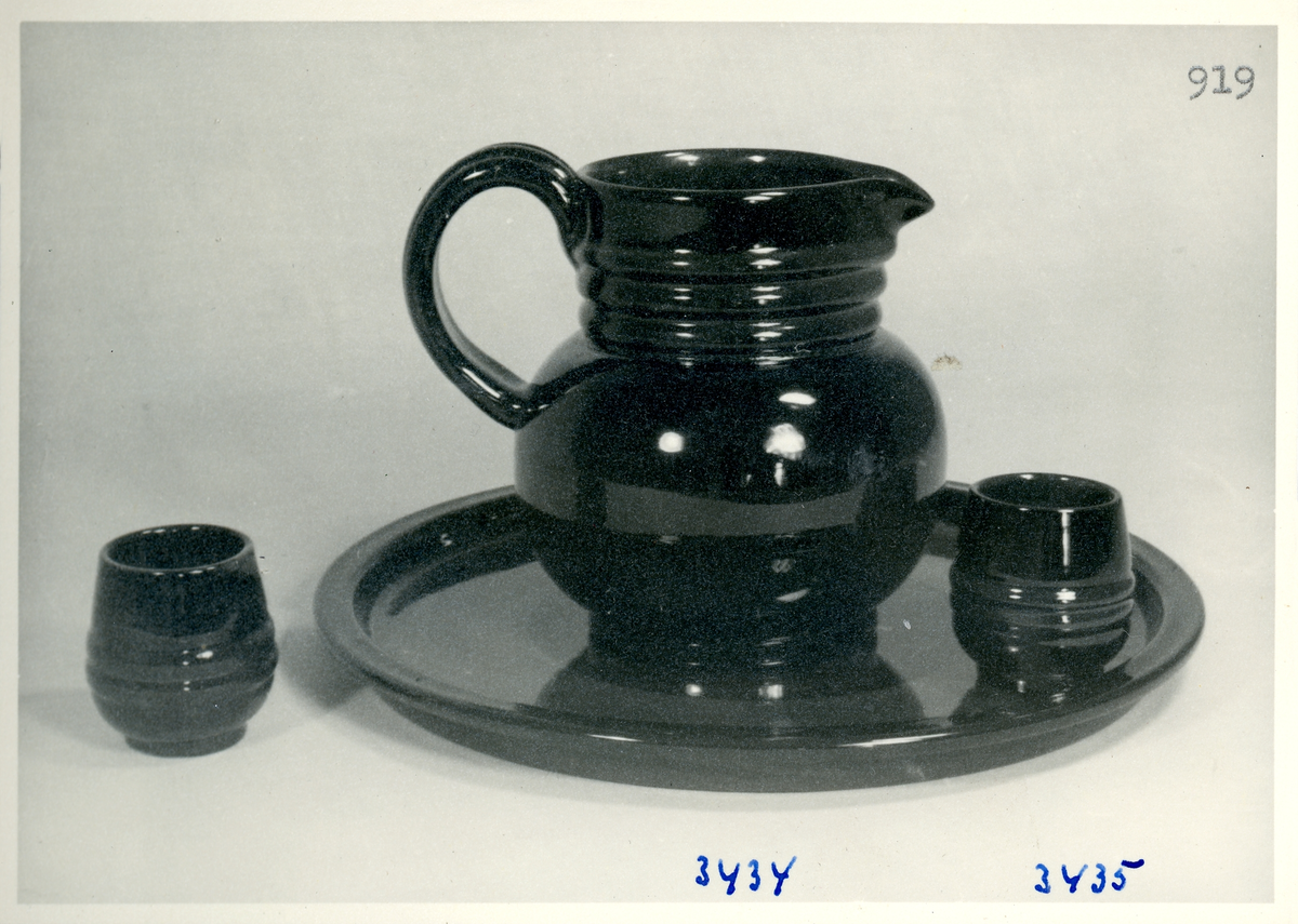 Glöggkanna med bägare från Bo Fajans, formgivare Eva Jancke-Björk, 1900-talets mitt.