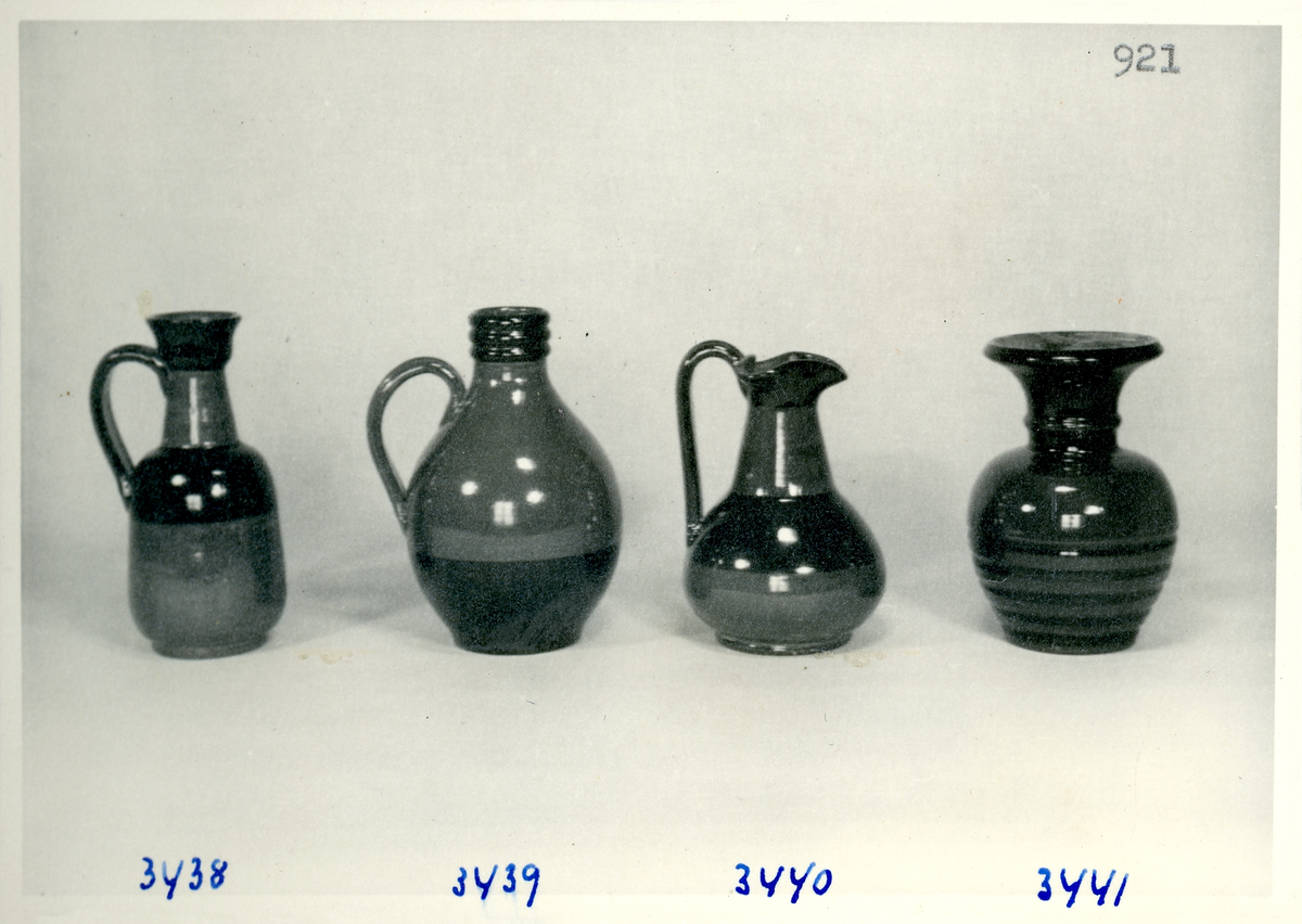 Krus och vaser från Bo Fajans, formgivare Eva Jancke-Björk, 1900-talets mitt.