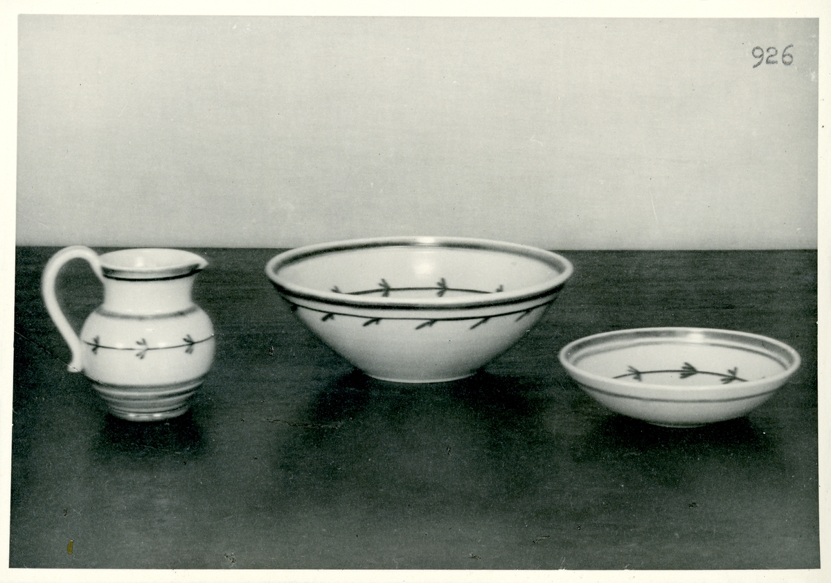 Kanna och skålar från Bo Fajans, formgivare Eva Jancke-Björk, 1900-talets mitt.