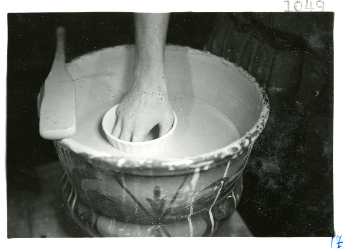 Bild från tillverkningen på Bo Fajans. Föremålet doppas i glasyren.