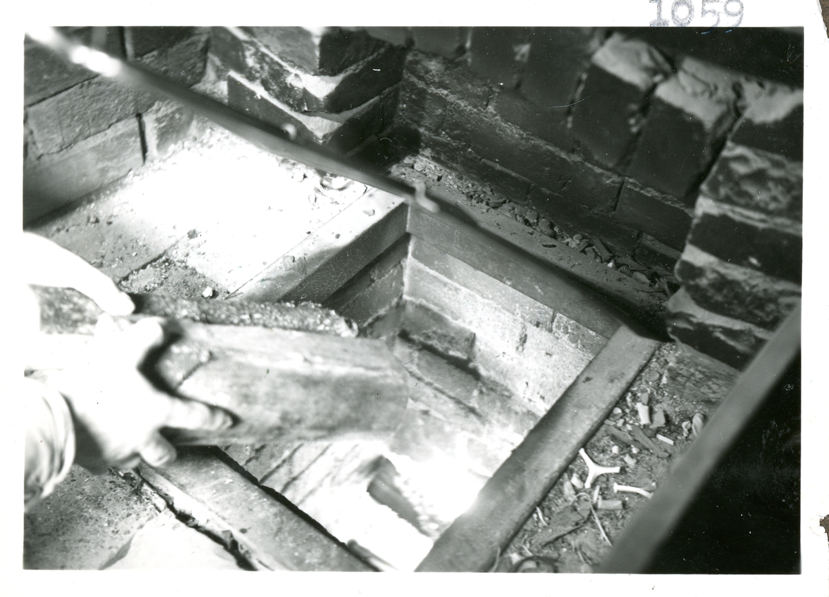 Bild från tillverkningen på Bo Fajans. Eldningsluckan till en rundugn.