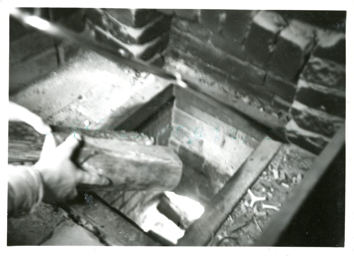Bild från tillverkningen på Bo Fajans. Eldningsluckan till en rundugn.