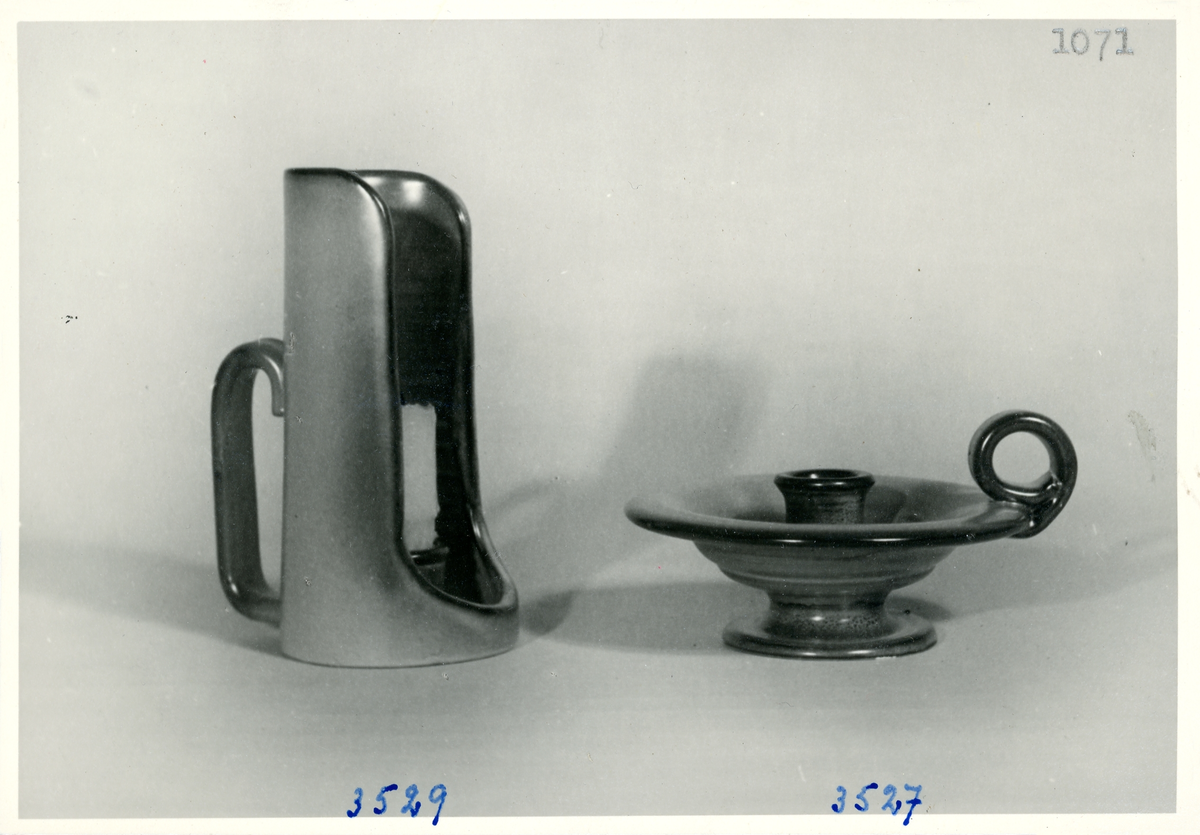 Lykta och ljusstake från Bo Fajans, formgivare Eva Jancke-Björk, 1900-talets mitt.