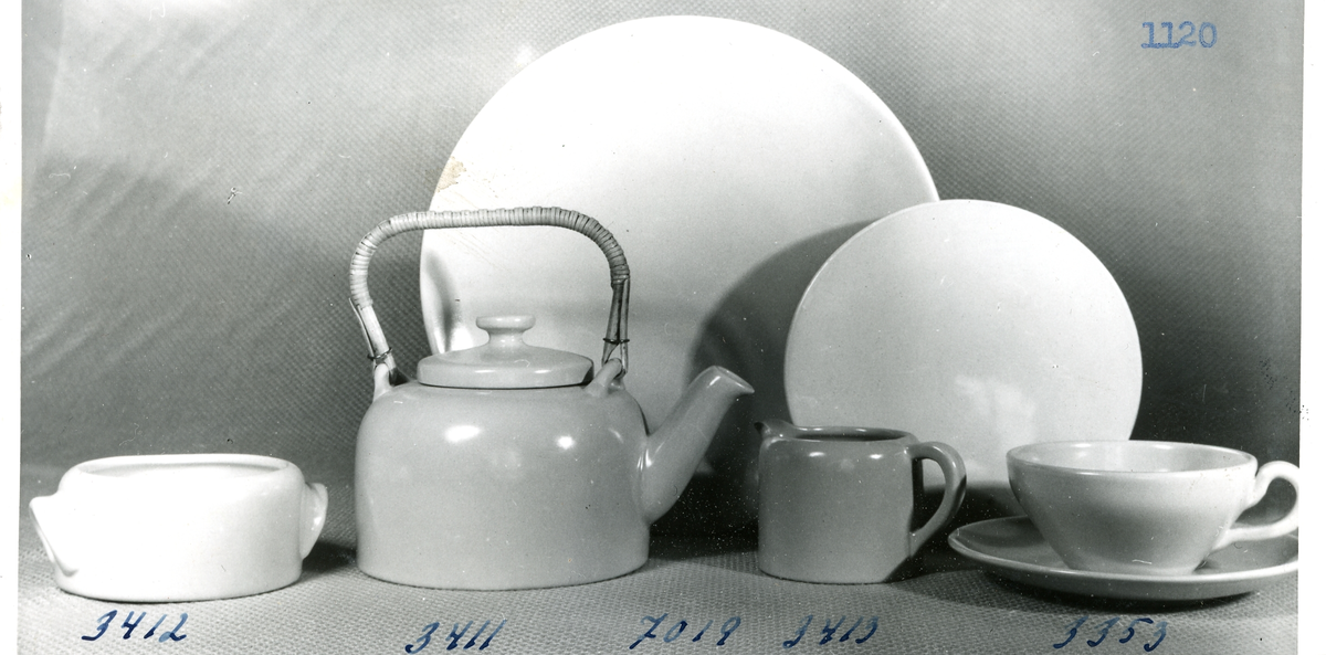 Teservis från Bo Fajans, formgivare Eva Jancke-Björk, 1900-talets mitt.