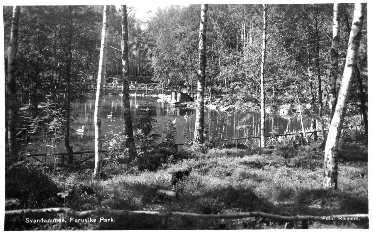 Vykort med motiv från Svandammen, Furuviks park.