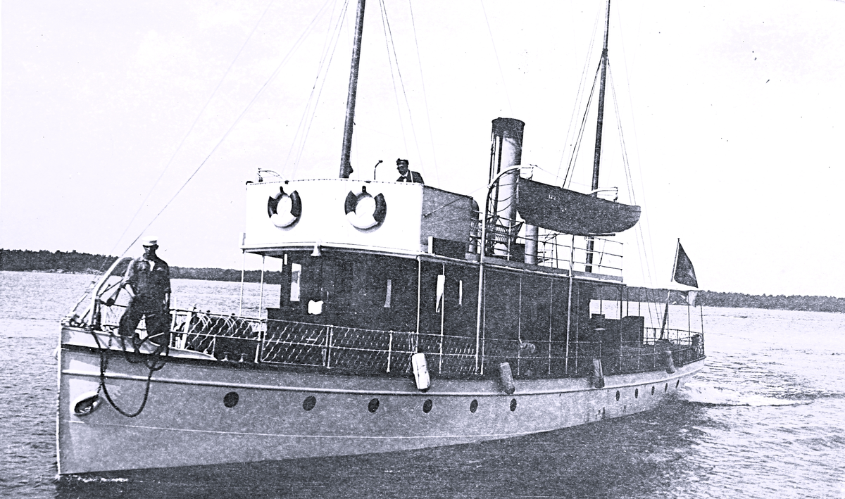 Ångbåten "Tritonia" ute på färd. Fotot är taget från Marö brygga, 1924 (enligt text i album).