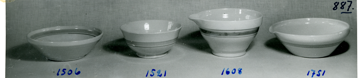 Två skålar, skål med pip samt fat med pip från Bo Fajans, formgivare Allan Ebeling, 1900-talets mitt.