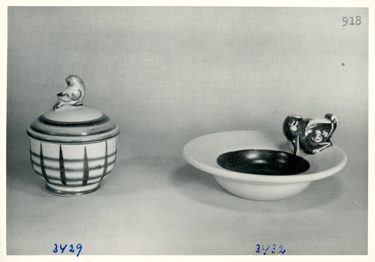 Bonbonjär och askfat från Bo Fajans, formgivare Eva Jancke-Björk, 1900-talets mitt.