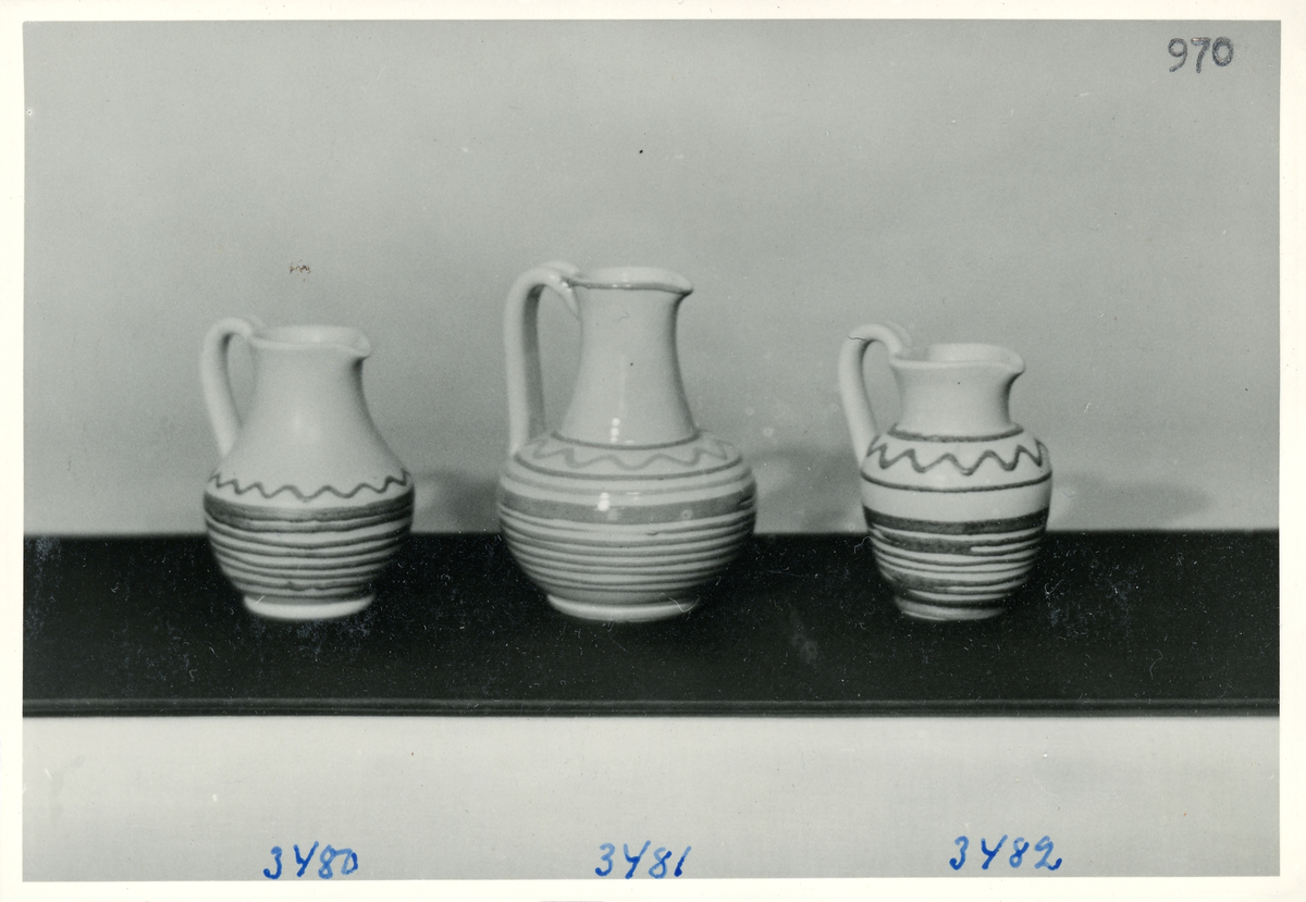 Kanna och två krus från Bo Fajans, formgivare Eva Jancke-Björk, 1900-talets mitt.