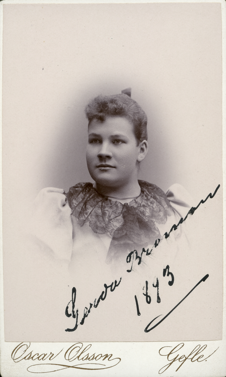 Kvinnoporträtt. Text på framsida kort: "Gerda Broman 1893".
