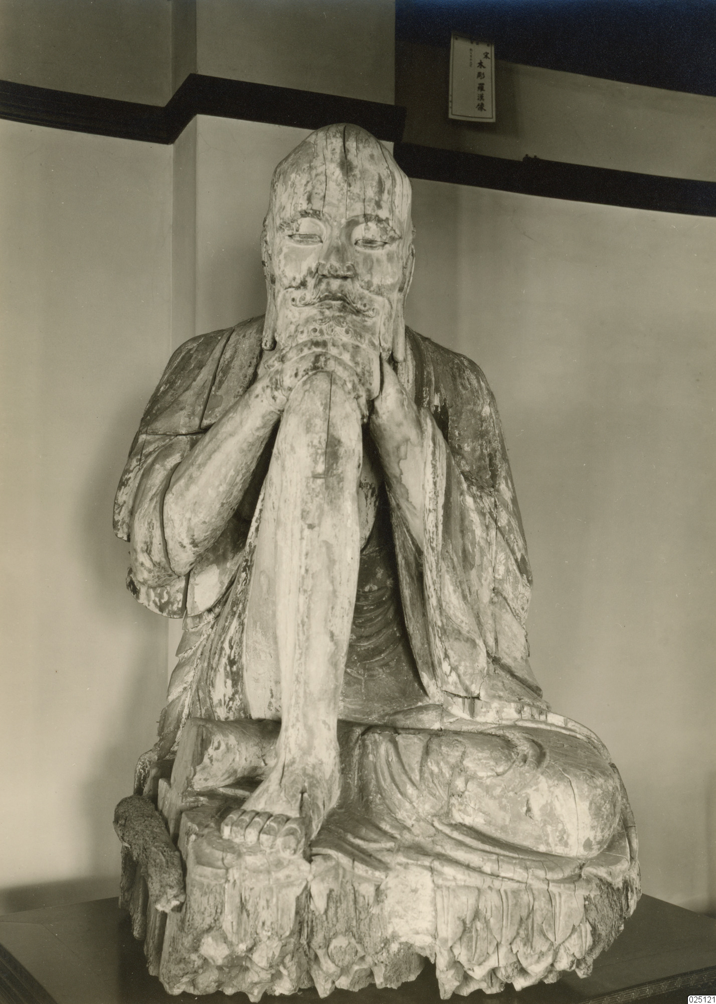 En bronsstaty av Bodhisattva Guanyin sittandes på en kudde eller tron.