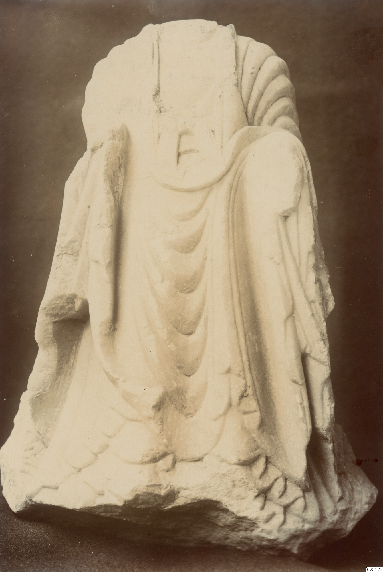 En staty med en kronbeklädd buddah sittandes på en tron.