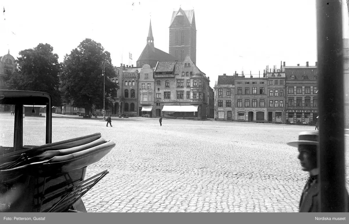 Vy från norra Tyskland, Wismar. Markö. Över husen Marienkirche.