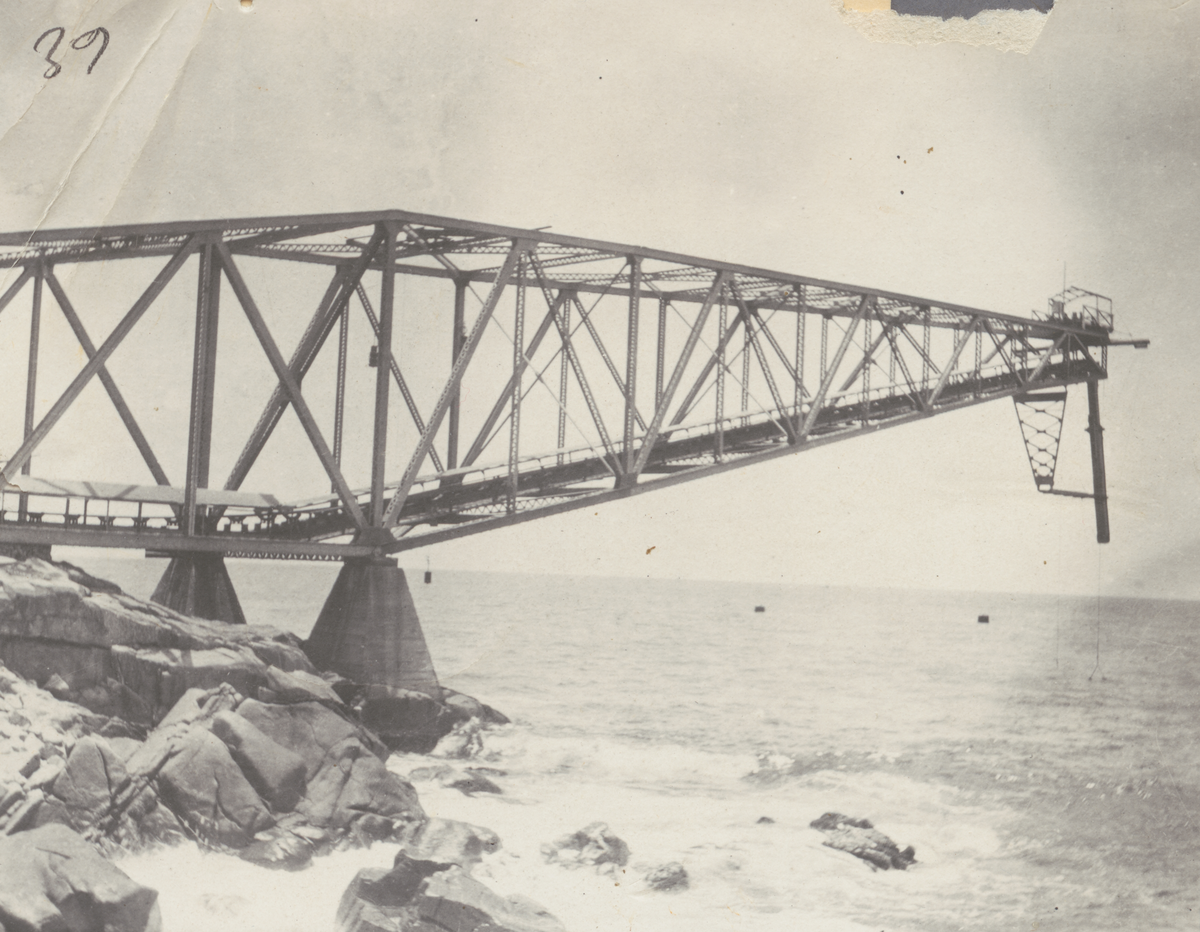 Text på baksida av fotot "Överhängande lastarm vid karibiska havets strand" Cuba 1909-1911