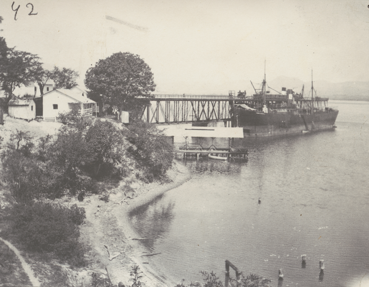 Text bak på foto: "Lastpiren vid Santiago de Cuba, Hösten 1910"