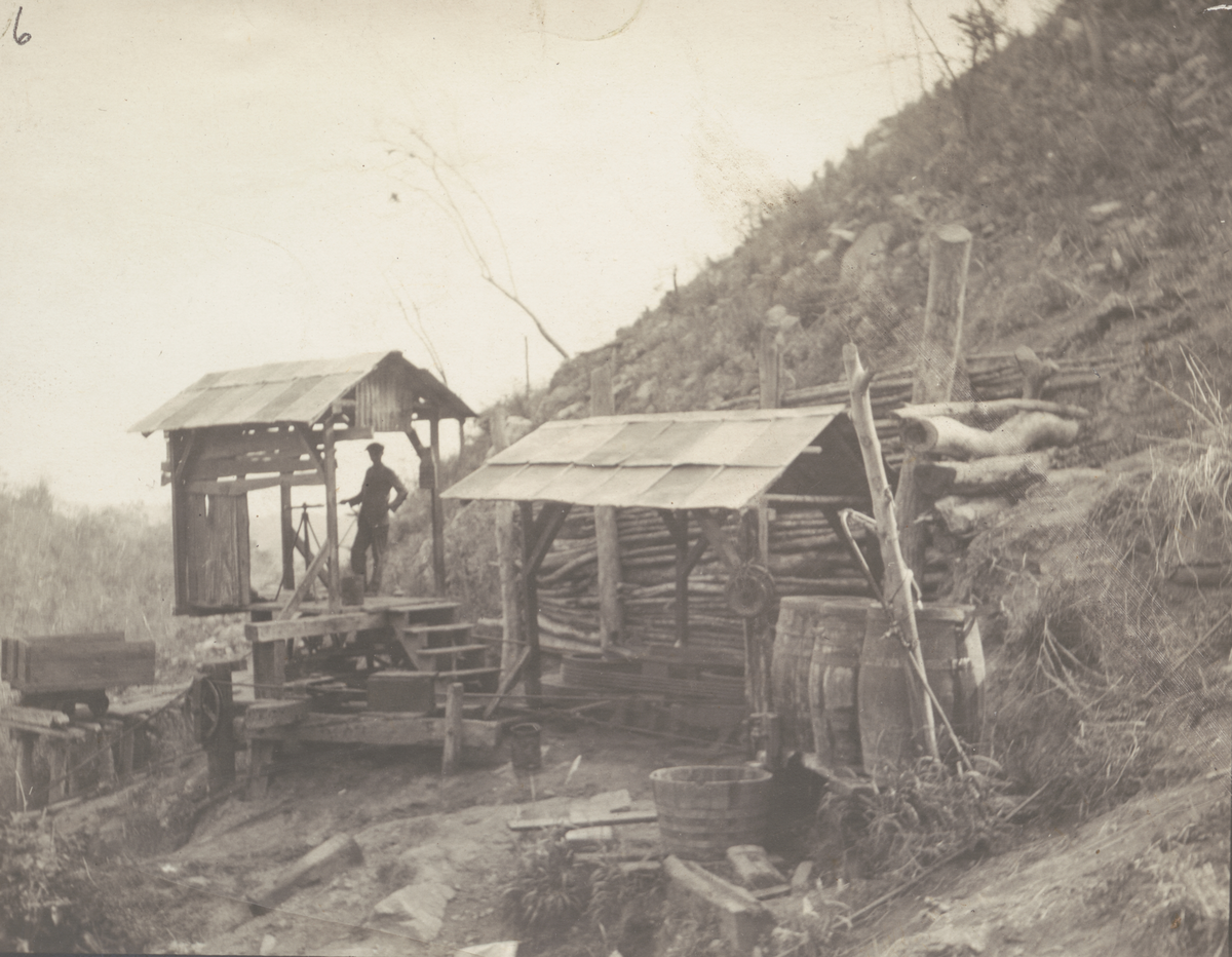 Text bak på foto: Daiquiri Gruvor, Alberto Mines övre bromsbanestation, våren 1910, Cuba 1910"