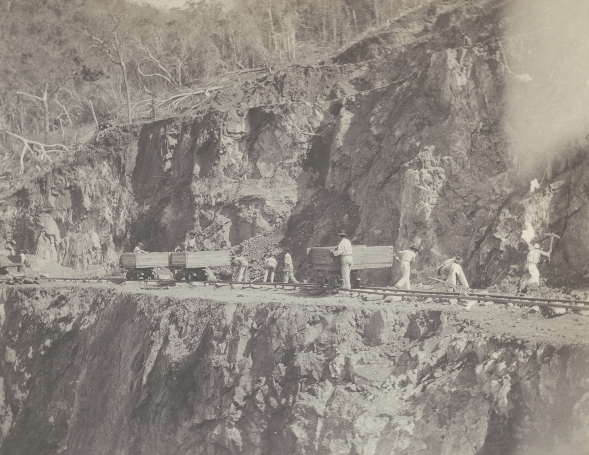 Text bak på foto: "El Cuero gruvor, malmpall, våren 1910"