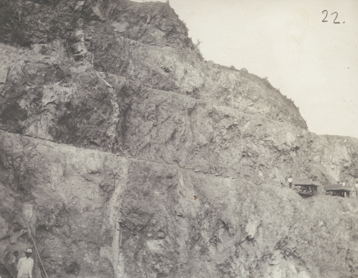 Text på baksidan av foto: "Juraguá Gruvor. Eastmine. Ett par av pallarne. Obs! Gråbergsgången. Hösten 1910"