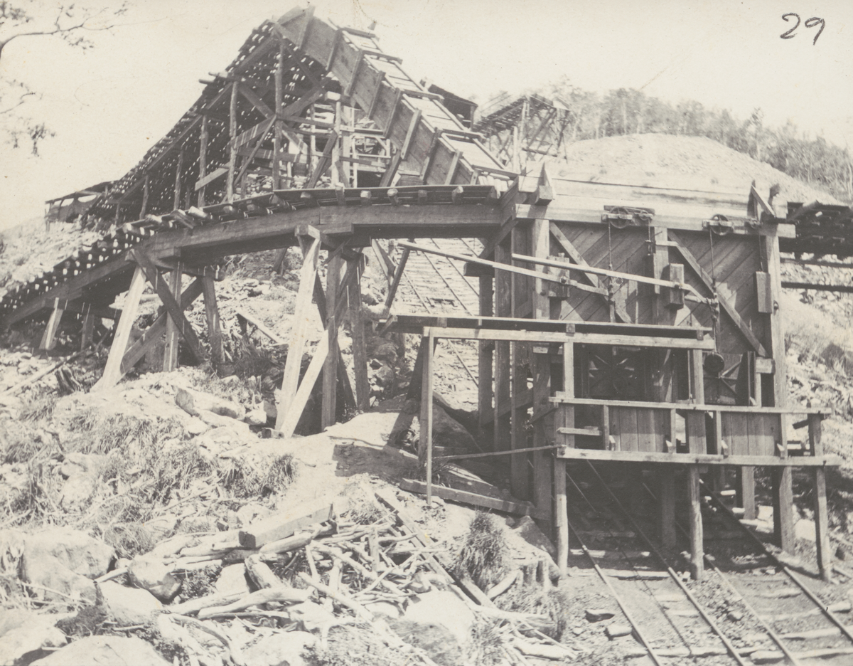 El Cuero, Kuba år 1911. Effektiv transportanordning vid gruvdrift, transportband av gruvmateriell till behållare/fickor som del av transporten som är kopplat med järnvägen.
