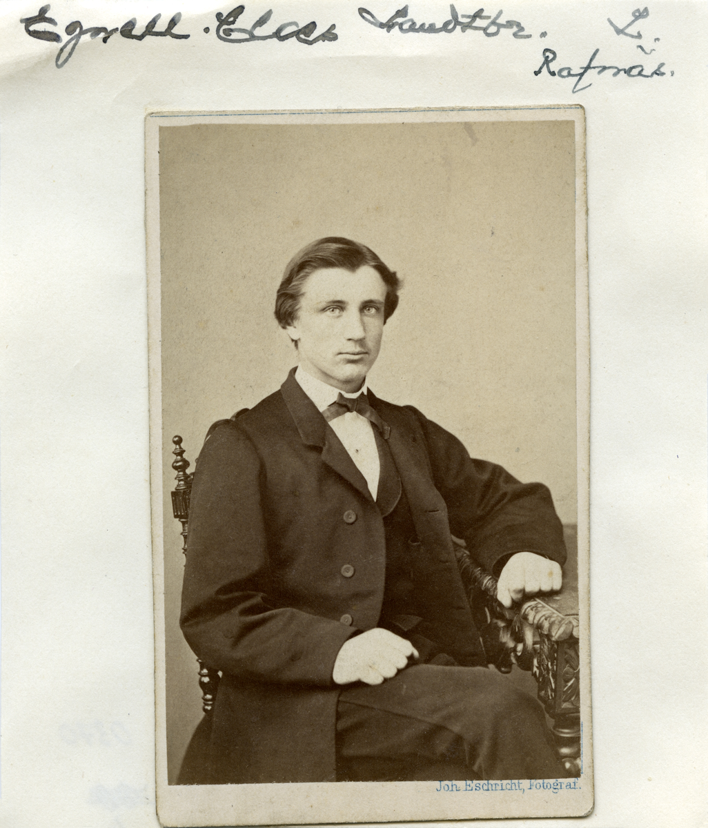 Claes Egnell hade som son till Linköpings borgmästare rimligtvis goda förutsättningar i livet. Likväl visade han på handlingskraft när han ensam och endast nyss fyllda 20 år tog över arrendet av gården Stora Grönhögs 2 mantal i Furingstad. Hösten 1876 tog han nästa steg och blev enskild ägare till gården Eriksberg i Kvillinge. Efter ett kort nedslag i Kuddby köpte han år 1880 den större gården Skäggestad i Törnevalla. Där gift 1883 med Helena Amalia Ottilia Vesslien (1853-1944), bördig från Dagsberg och ägare av Ravnäs säteri i Konungsund. Paret flyttade till säteriet 1895 och framlevde där till respektives död. Här porträtterad i Norrköping omkring 1865.