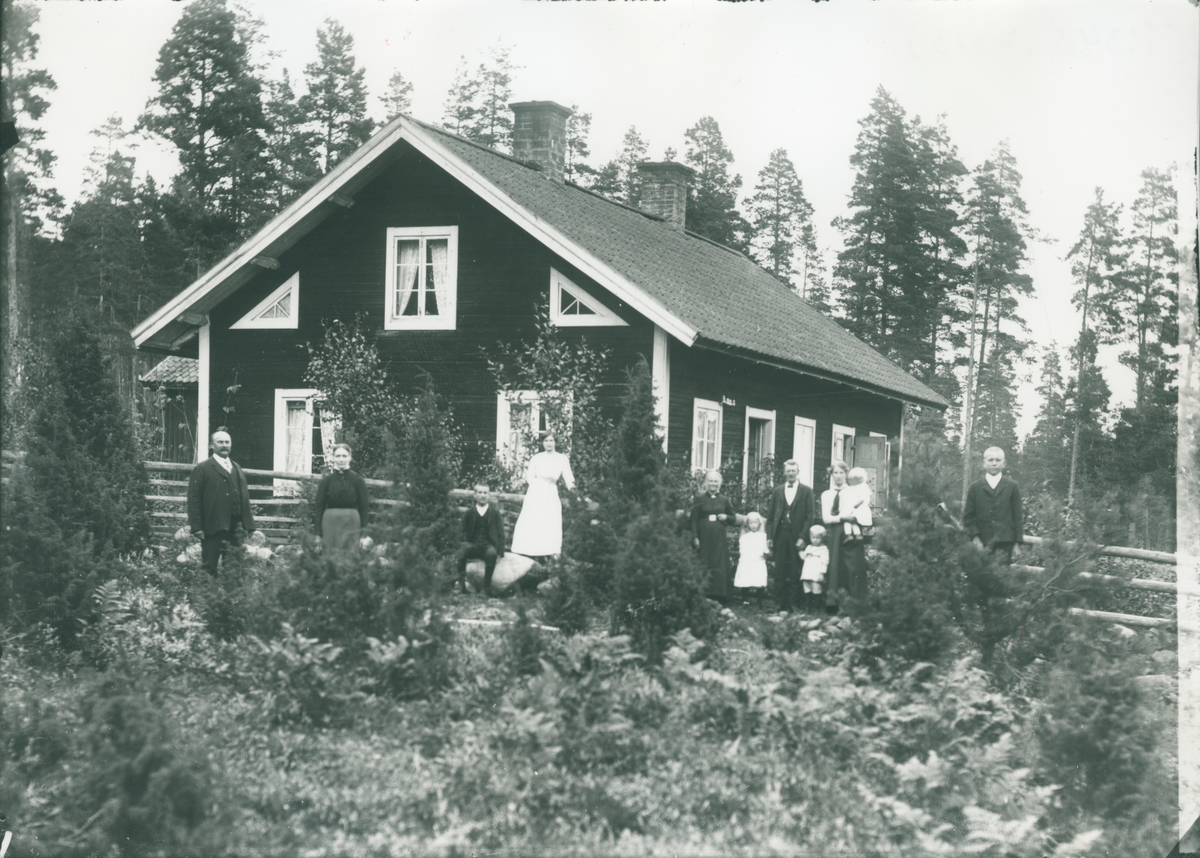 Familjen Sjö har samlats framför sin bostad i Blägda Frödinge, 1917.