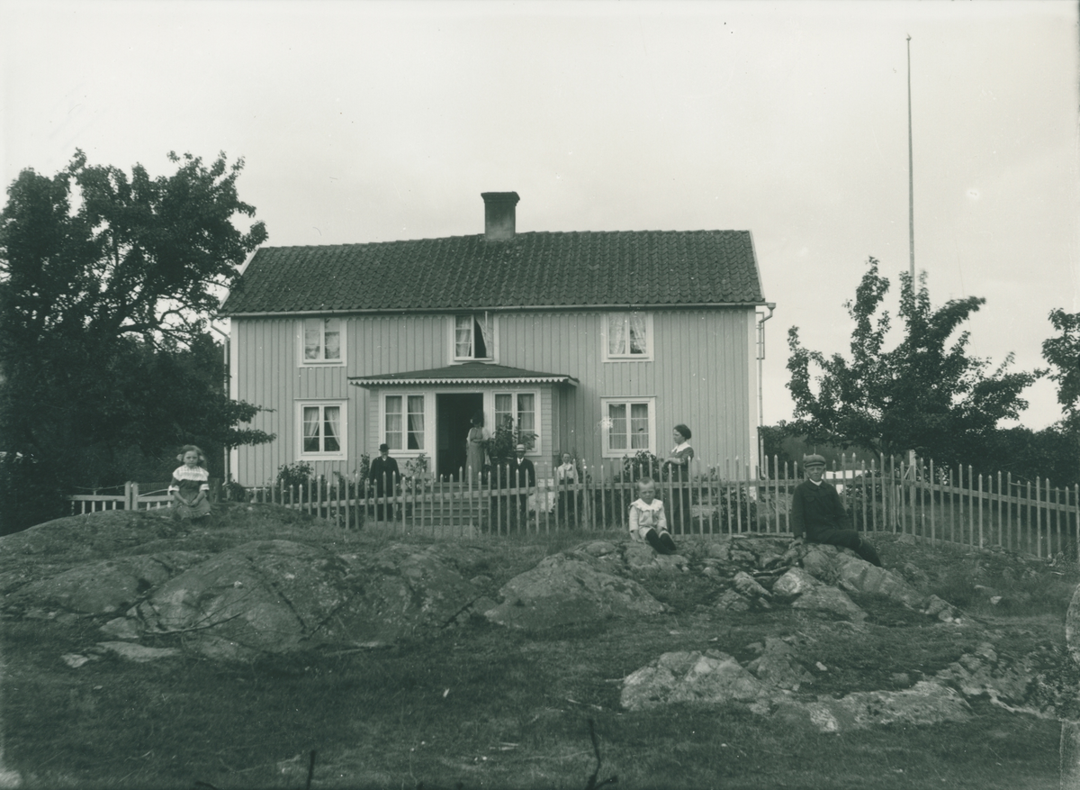 Familjen har samlats framför gården Harnäs för att fotograferas 1913.