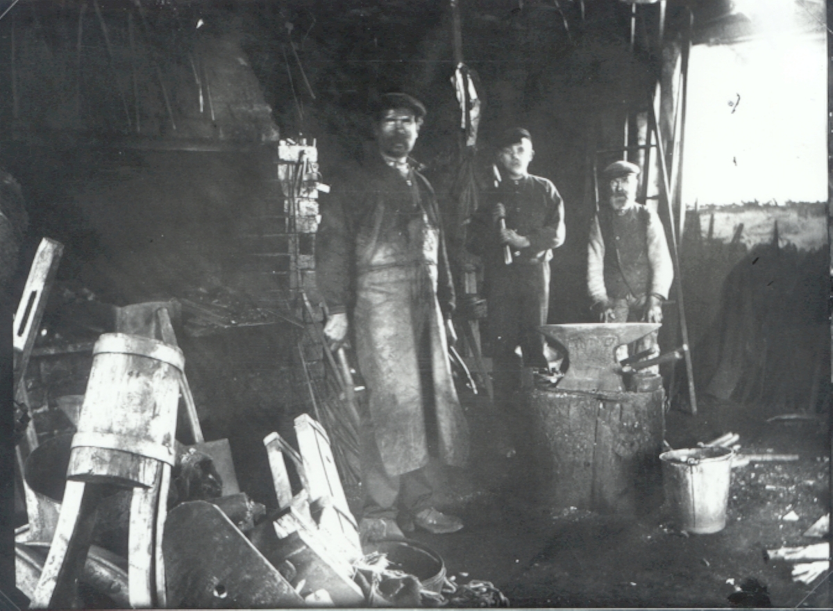 Smeder i arbete i O. Tolfs Smedja, Falsterbo 1916.