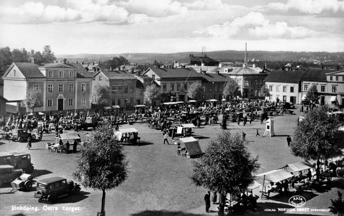 Titel: Marknadsdag på Östra torget i Jönköping.