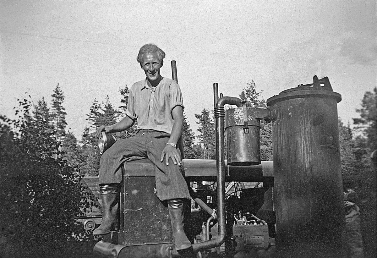 Anderstorps Stormosse ca 1945. Torvtäkt bedrevs här under andra världskriget. Arne Petersson var förman på torvtäkten under hela täkttiden och sitter här på ett gengaslok.